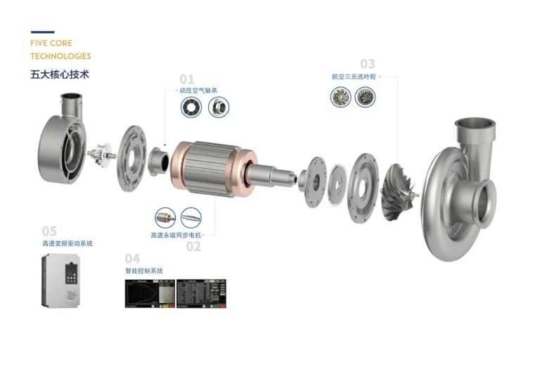 Unveiling the five core technologies for enhancing the efficiency of air suspension blowers, covering innovative solutions such as air bearing optimization, permanent magnet motor control, and impeller flow field design, helping industrial energy savings exceed 45%.