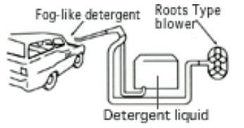 The two rotors turn in opposite directions. Gas enters the blower, fills the rotor cavities, and is carried to the outlet.